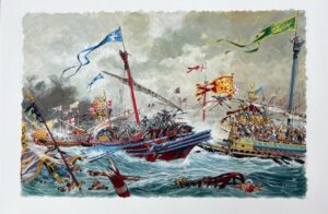 Photo de l’artiste venant du Fonds. Et photo Dons à la bibliothèque du YCF tome 1 par Pascale et Philippe JOUBERT, tome 2 par Jean-Louis BENOIST. Photo de l’illustration de La Bataille de Lépante.