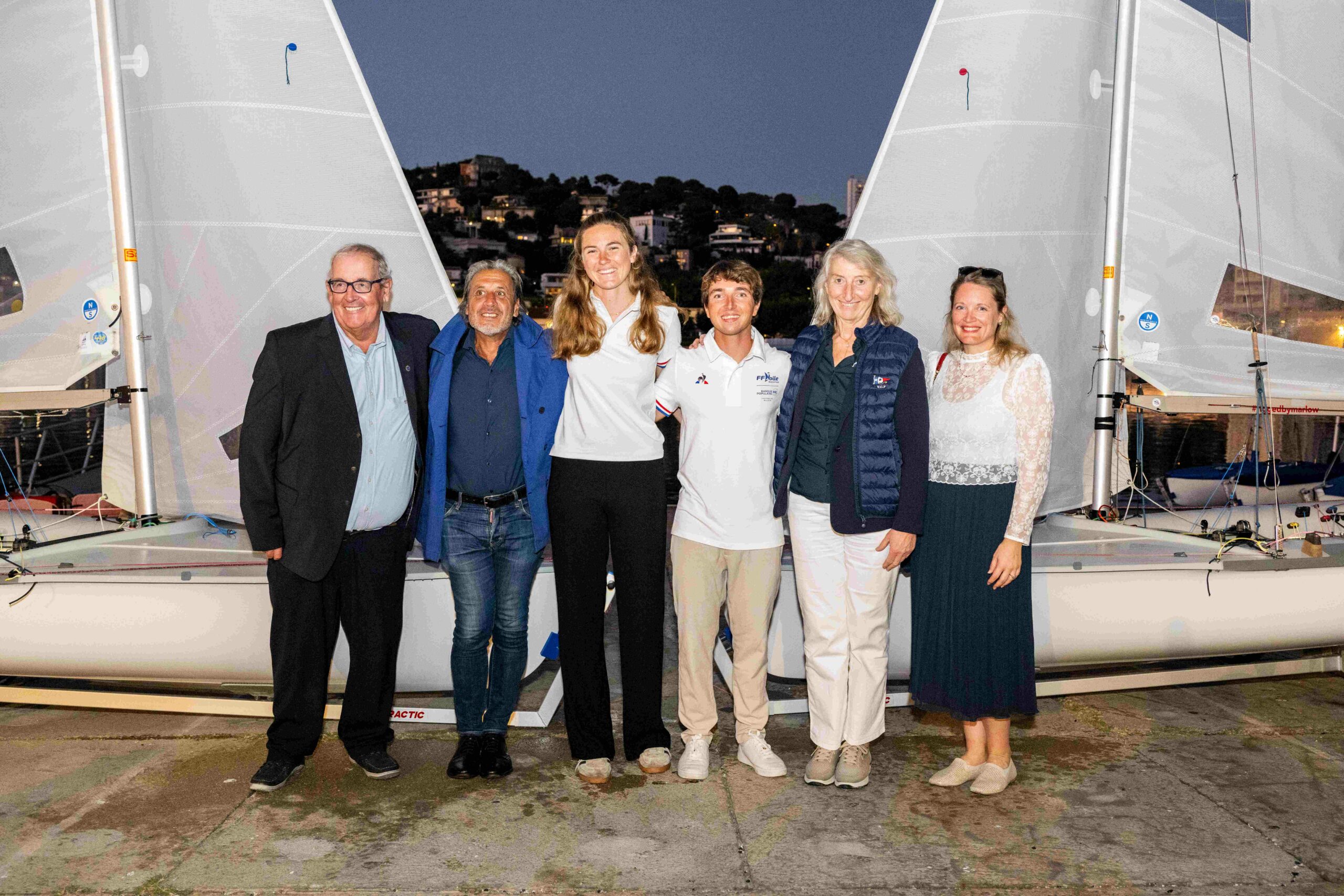 En présence de Flore Jambu-Merlin, Présidente de la commission des régates et des classes partenaires, et de Yves Ginoux, Président du Pôle Course, notre Présidente a rappelé les valeurs et l’engagement fort du YCF dans le soutien à Lucie et Matisse, en collaboration étroite avec le Yacht Club de Cannes qui est leur club d’origine, représenté par son Président Jean-François Cutugno, et avec leur partenaires privés et institutionnels.