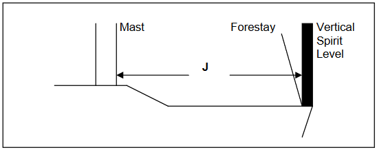 J: Base du triangle avant, distance horizontale de la face avant du tube du mât au point d’attache de l’étai sur le pont