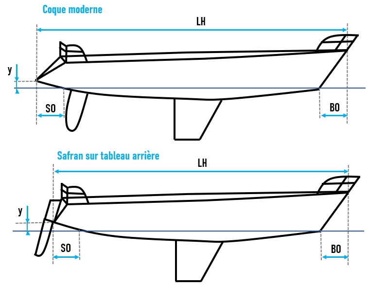 LWP: longueur de flottaisonBO: élancement arrière