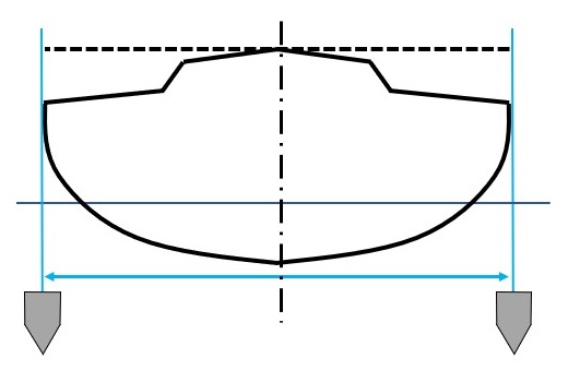 HUW Cotre : Largeur supérieure de voile d’avant. La plus grande des deux valeurs entre 12.5% de HLP Cotre ou HUW de la voile d’avant ayant la plus grande surface.
