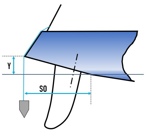 Mettre le tangon en position horizontale, fixé au mât, puis mesurer la distance entre la face avant du mât et la pointe avant du tangon. Cela correspond a la plus grande longueur horizontale entre la face avant du mât au niveau vertical de la ferrure de tangon et l’extrémité du tangon de spinnaker, mesurée dans ou près de l’axe du bateau en ignorant tout rail et accastillage.