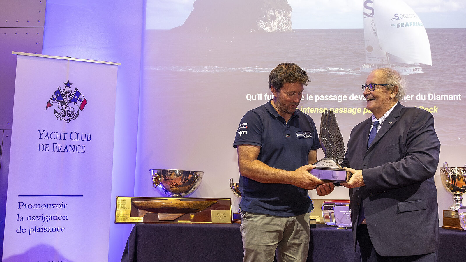Alexis Loison reçoit le Trophée André VIANT, pour sa Victoire à la Solitaire du Figaro Coureur ayant réalisé une performance particulière.