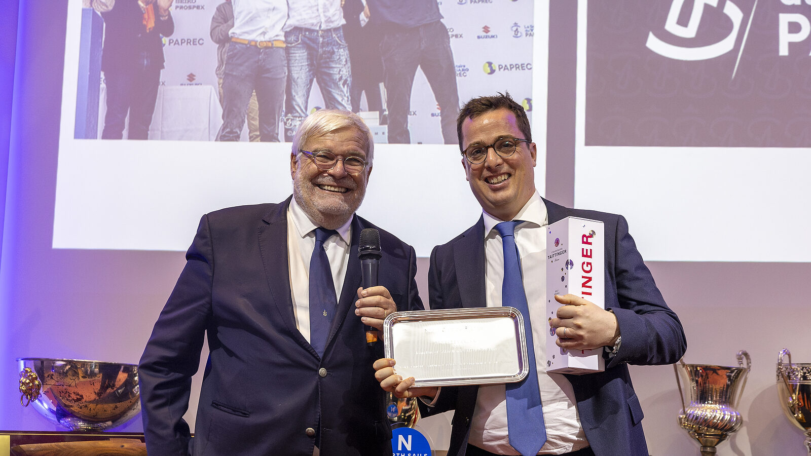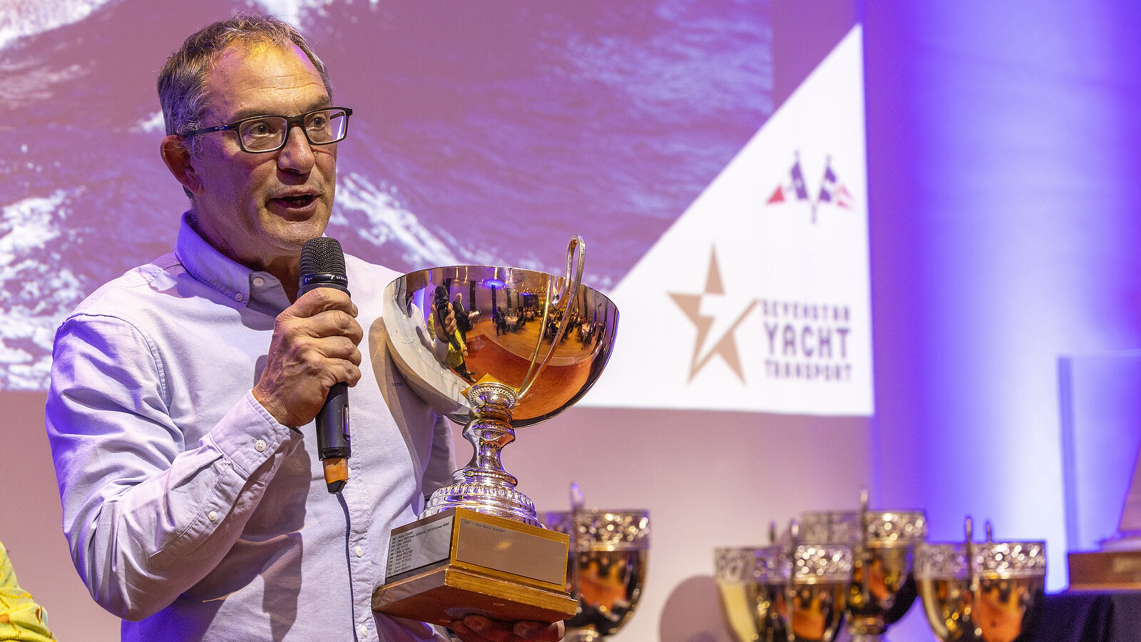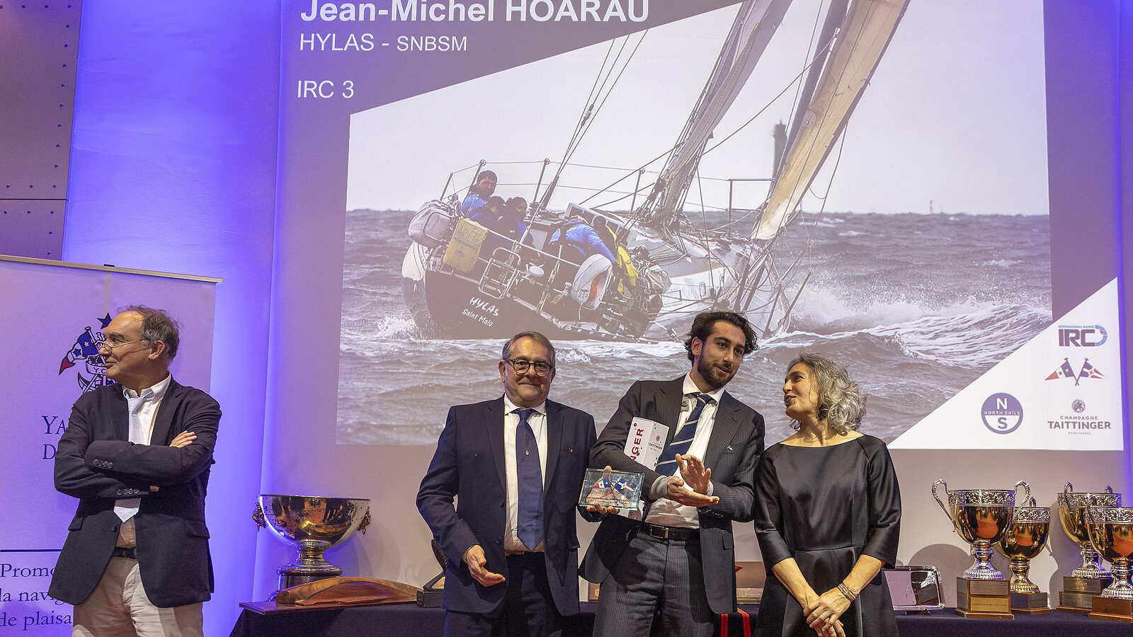 Géry Trentesaux -représenté par Guillaume Rolland (sur la photo), reçoit le Mémorial AUCLAIR comme Meilleur(s) Français au Championnat du RORC, sur Long Courrier