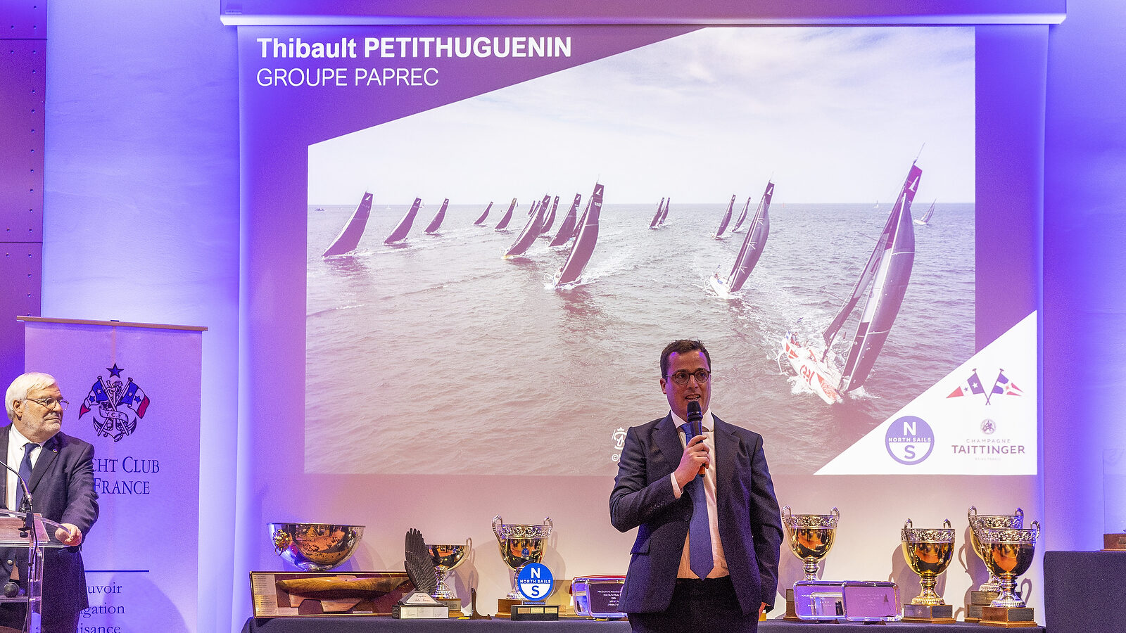 Thibault Petithuguenin reçoit le Trophée VARUNA, comme Sponsor apportant soutien aux coureurs et à la course au large. Paprec.